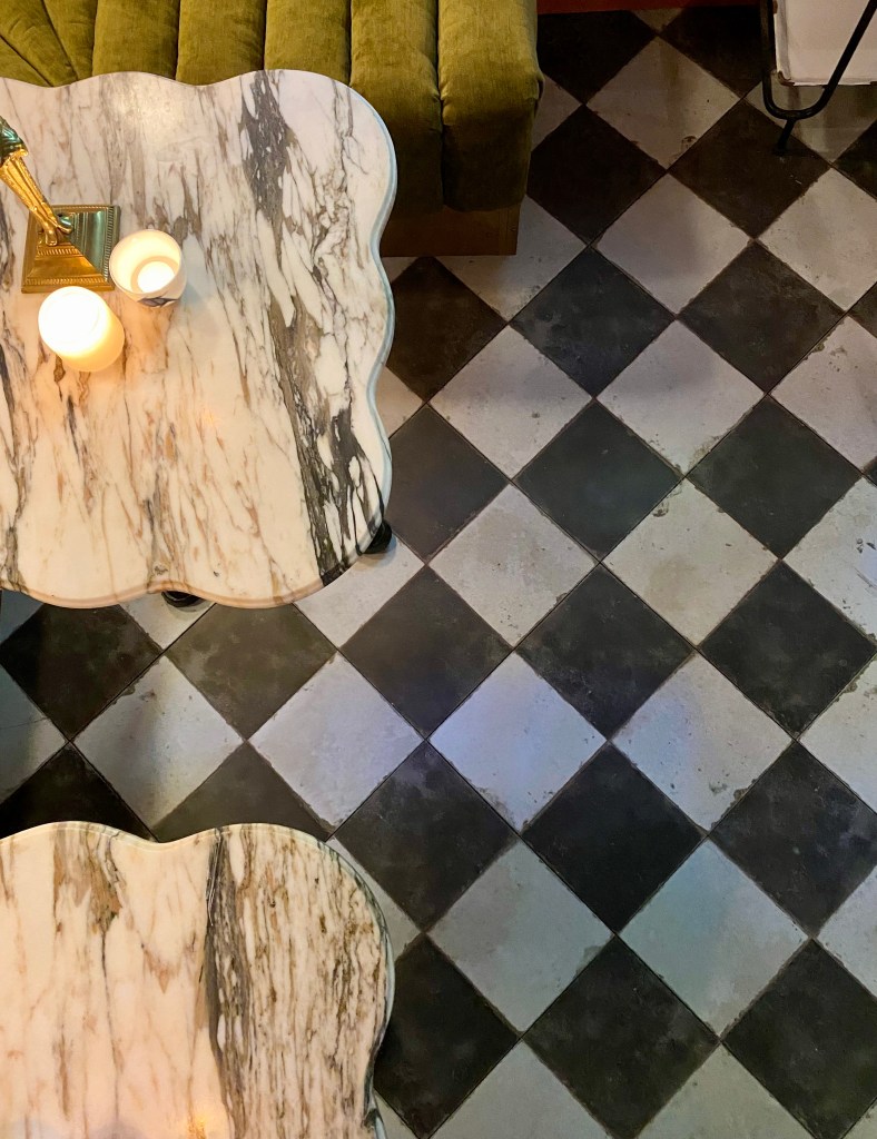 The checkerboard flooring was chosen for its matte and rustic finish. I loved the idea of using a classic black and white tile in this space, but I was VERY specific about what that would look like. I think it’s very important to keep two things in mind when using checkerboard tile: 1. the angle at which it is installed and 2. the finish of the tiles.