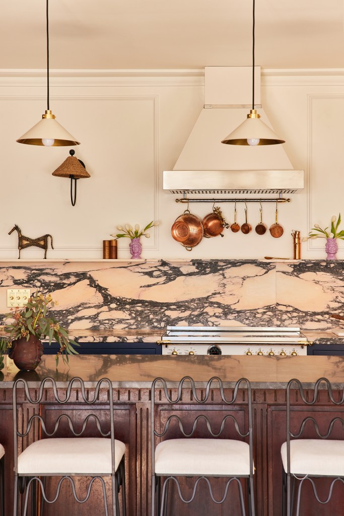 I also love how the stunning, two-toned metallic handles match the rest of the Bertazzoni appliances in the rest of the kitchen. If we ever tire of the gold finials on them, we can always swap all of them out for the Copper or Black Nickel.