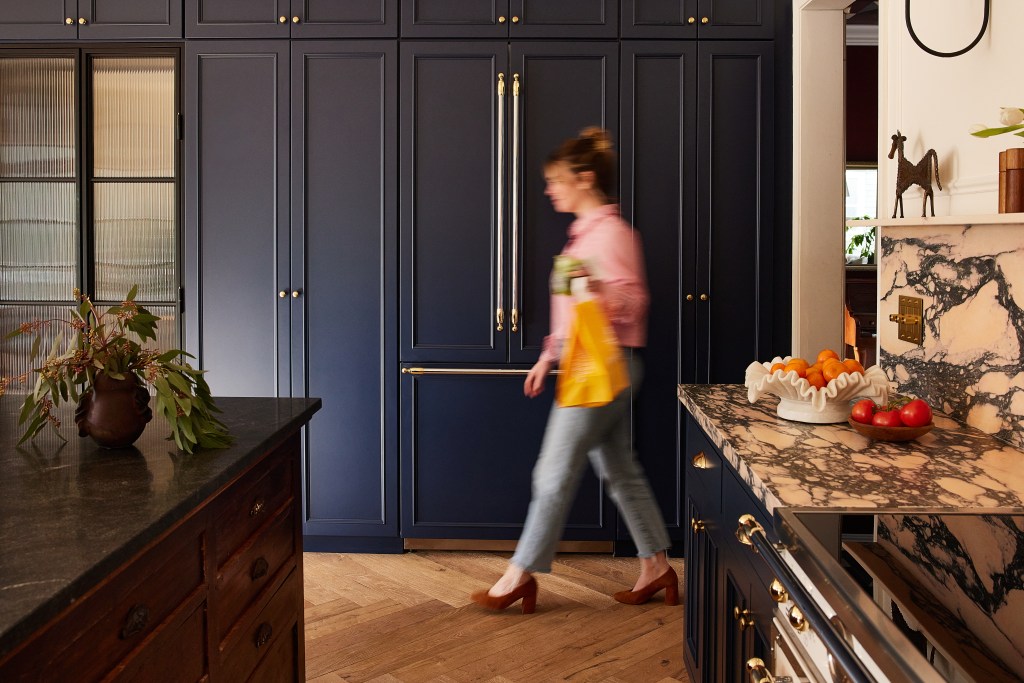 I’ve always dreamed of having a panel-ready refrigerator and once we knew we’d be getting this one from Bertazzoni, we decided to design this entire wall of cabinetry around it. We severely lacked cabinetry in our last kitchen, so making sure we had ample storage in this new kitchen was tantamount. We loved the idea of building this Bertazzoni fridge into a wall of cabinetry to make it seamlessly blend into not only the wall, but the rest of the kitchen. The fact that the Bertazzoni Heritage Series fridge was panel-ready allowed us to do exactly that.